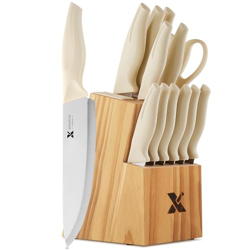 XANAPON 14-Piece Kitchen Knife Set with Block, High Carbon Stainless Steel Sharp Chef Knives with Built-in Sharpener, Ergonomic Handles, Professional Cutlery for Home Cooking & Gifts