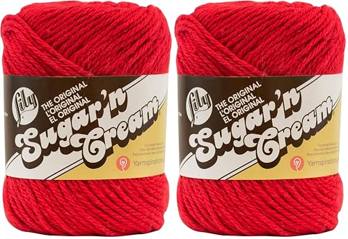 Lily Sugar 'N Cream The Original Solid Yarn, 2.5oz, Medium 4 Gauge, 100% Cotton - Red - Machine Wash & Dry (Pack of 2)