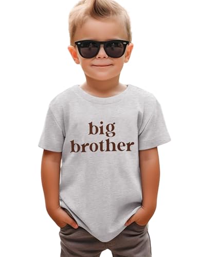 SANIXJOO Big Brother Toddler Shirt Baby Boy Promoted to Big Bro Sibling Reveal Shirt Big Brother Gifts for Toddler Boy(Light Grey,4-5T)