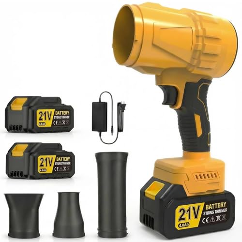 Leaf Blower Cordless, 21V Electric Handheld Leaf Blower with 2 x 4.0Ah Batteries, 3 Extended Nozzle, Adjustable Speed, Lightweight Blower Portable Dust Cleaner for Lawn Care, Patio Cleaning, Leaves