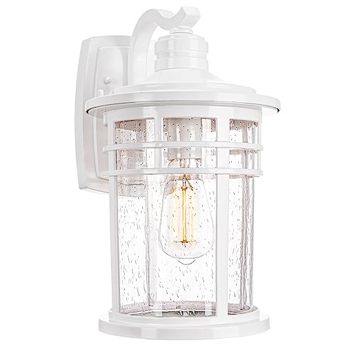 Darkaway Large Outdoor Porch Lights Wall Mount, 15inch Outdoor Wall Sconces with Seeded Glass Waterproof Exterior Lights for Patio Yard House Hallway Doorway Garage(Large, White)