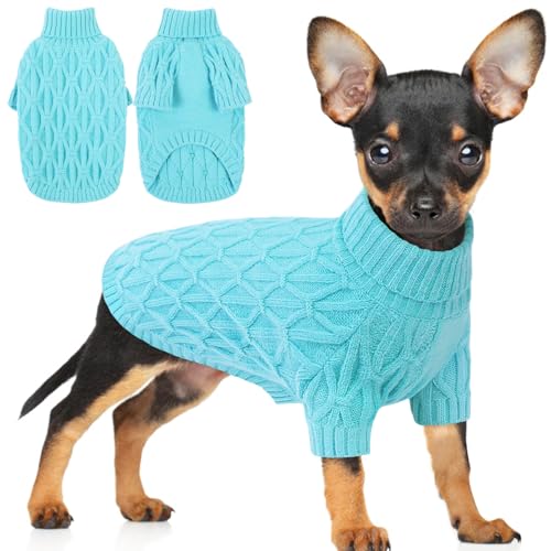 Preferhouse XS Dog Sweater for Dogs, Puppy Sweaters for Small Dogs Male Thermal Knitted Doggy Sweaters Pet Clothes Doggie Turtleneck Sweatshirts, Lakeblue XS