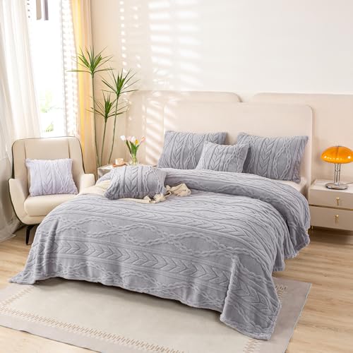 YUSOKI Sherpa Twin XL Blanket(Without Pillows)-3D Stylish Design Super Soft Blankets for Teen Girls Women Couch Bed Sofa Chair Men Boys Gift(Light Grey,65"x90")