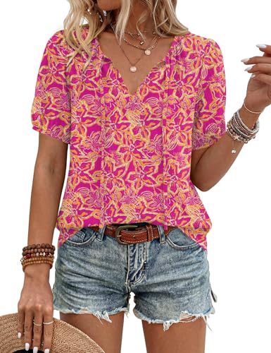 LOMON Cute Summer Outfits for Women Spring Holiday Boho Peasant Blouses Flattering Shirts (Rose Orange Floral,XL)