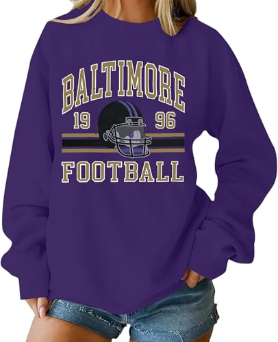 MOUSYA Football Sweatshirts Women Game Day Sweatshirt Game Day Fan Gift Long Sleeve Tops Purple