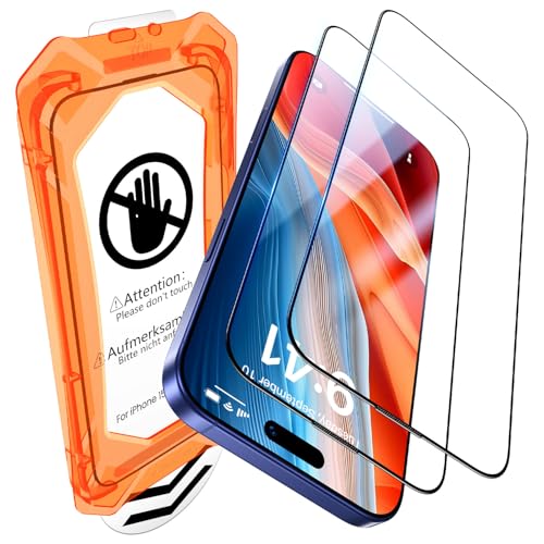 UniqueMe for iPhone 15 Plus / 16 Plus Screen Protector - [Military Grade Shatterproof & 9H+ Hardness] Tempered Glass Full Coverage Protection, Easy Installation, 2 Packs