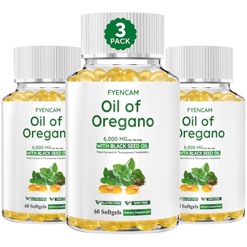 Oil of Oregano with Black Seed Oil, 6000mg Oregano Oil Capsules Organic with Carvacrol & Thymoquinone, 2 in 1 Supplement for Immune Health, Non-GMO, Easy to Swallow, 3 Bottle, Total 180 Softgels