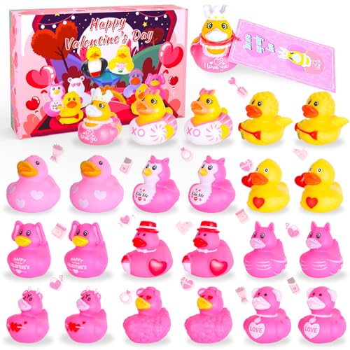 24 Pcs Pink Ducks for Ducking with Tags,Valentine Ducks for Toddler Kids Bath Toys Classroom Exchange Prizes Giveaways Party Favors Toys