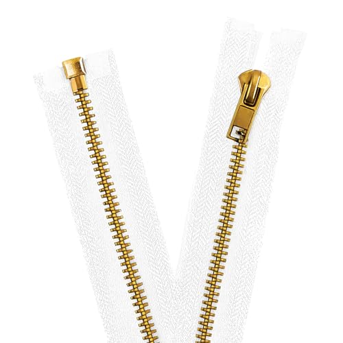 Mandala Crafts 32 Inch Metal Heavy Duty Zippers - #10 White Tape Antique Brass Metal Separating Zippers for Sewing Jacket Coat Upholstery