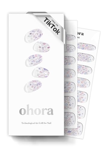ohora Semi Cured Gel Nail Strips (N Petal Rain) - Purple, Patterned, Works with Any UV/LED Lamps, Salon-Quality, Long Lasting, Easy to Apply & Remove - Includes 2 Prep Pads, Nail File & Wooden Stick
