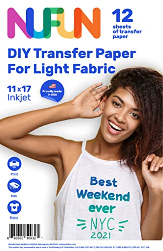 NuFun Activities Inkjet Printable Iron-On Heat Tshirt Transfer Paper 11x17 (12, Light Fabrics)