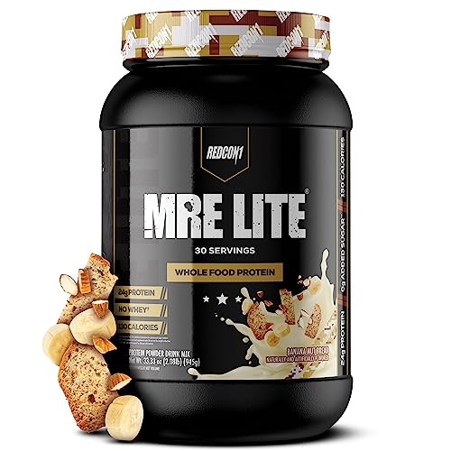 REDCON1 MRE Lite Whole Food Protein Powder, Banana Nut Bread - Low Carb & Whey Free Meal Replacement with Animal Protein Blends - Easy to Digest Supplement Made with MCT Oils (30 Servings)