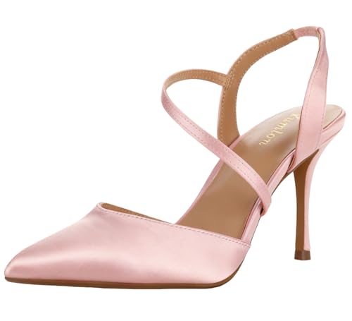 Yumlon Women's Closed Toe High Stiletto Heel for Women 3.3 Inch Ankle Strap Pointed Toe Heels Pumps Prom Dress Bride Satin Shoes for Wedding Dinner Party Sexy Pink
