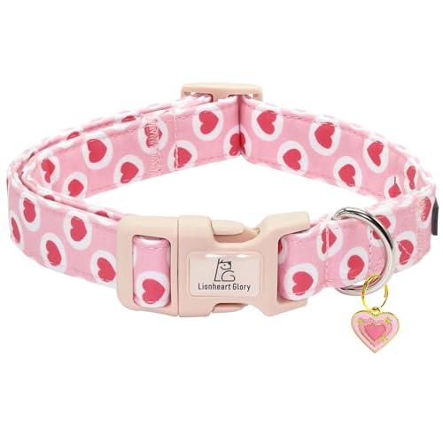 Lionheart glory Valentine's Day Dog Collar - Pink Heart Dog Collar Adjustable Soft for Small Puppy Girl Boy Dogs Spring Party Holiday Pet Collars