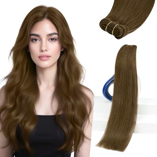 Sunny Hair Sew in Hair Extensions Real Human Hair Brown Weft Hair Extensions Human Hair Color #3 Cool Brown Double Weft Full Head 14inch 70G