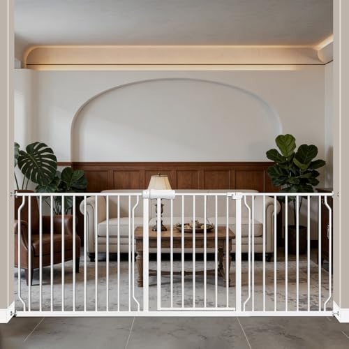 WAOWAO Baby Gate 76.38-81.07" Extra Wide Pressure Mounted Walk Through Swing Auto Close Safety White Metal Toddler Kids Child Dog Pet Puppy for Stairs,Doorways,Kitchen