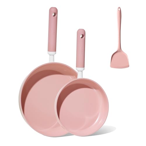 CAROTE Ceramic Frying Pan, 2 Nonstick Skillets & Silicone Spatula, Induction Compatible All Stoves