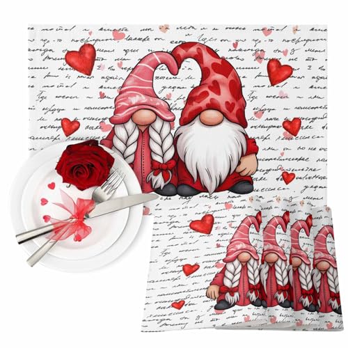 Valentine's Day Placemats Set of 6, Gnome Couple Place Mats Washable Dining Table Mats Wedding Anniversary Party Romantic Valentines Decor for Kitchen&Linens Outdoor Indoor, Red Love Heart Letter