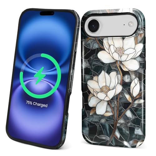 Flivro Magnetic Case for iPhone 17 Air,Compatible with Magsafe PC Hard Shell Silicone Inner Bumper, Anti-Scratch Full-Body Cover Shockproof Slim Design Stained Glass Unique Magnolia