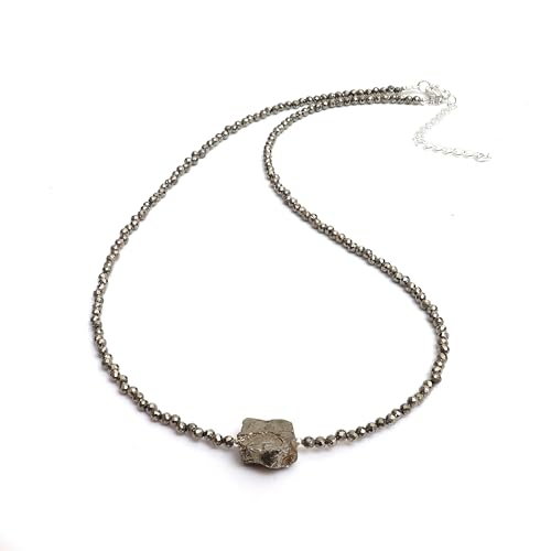 Gempires Pyrite Gemstone Beaded Necklace with Raw Crystal Protection Jewelry Hypoallergenic 18 Inch Silver Plated Prosperity Jewelry Gifts For Women