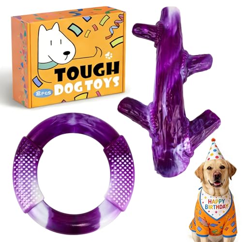 Furdog Dog Toys for Aggressive Chewers, Indestructible Chew Toys for Medium Large Breeds(20-80lb), Durable Squeaky Tough Dog Toy to Keep Them Busy (Purple, 2 Packs)