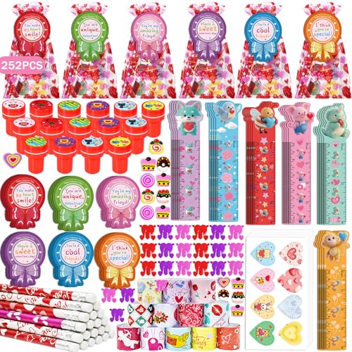 TOAPER 252 Pcs Valentines Day Gifts for Kids, Bulk Valentines Stationery School Classroom Exchange Valentines Goodie Bags Stuffers, Valentines Day Cards for Kids Party Favors