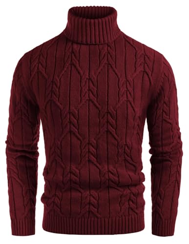 GRACE KARIN Men's Sweater High Stretchy Turtleneck Pullover Sweater Casual Cable Knitted Pullover Sweaters Wine XL