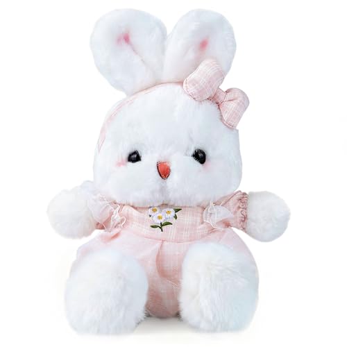 Rabbit Plush Doll, Bunny Stuffed Animal Toys Cute Fluffy Bunny with Pink Vintage Headbands Removable Skirts, 16 Inch Emotional Support Plush Conejo Figure Toys Easter Birthday Gift for Girls Toddlers