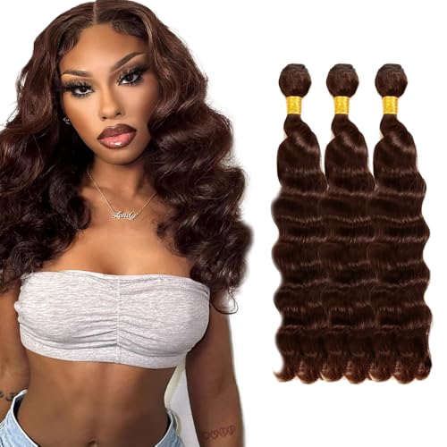Brown Human Hair Bundles #4 Loose Wave Bundles Human Hair 18 20 22 inch #4 Loose Deep Wave Bundle Dark Brown Color 150g