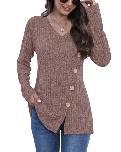 JomeDesign Fall Sweaters for Women 2025 Lonng Sleeve V Neck Ladies Tops Pink