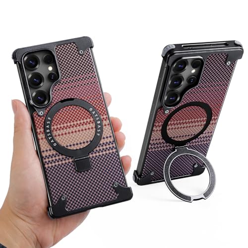 XAOVUIR for Samsung Galaxy S25 Ultra Case with Stand, Slim Frameless Kevlar S25 Ultra Case for Magsafe, Magnetic Protective S25Ultra Phone Cover for Men Women 6.86 Inch, Kevlar Red Sunset