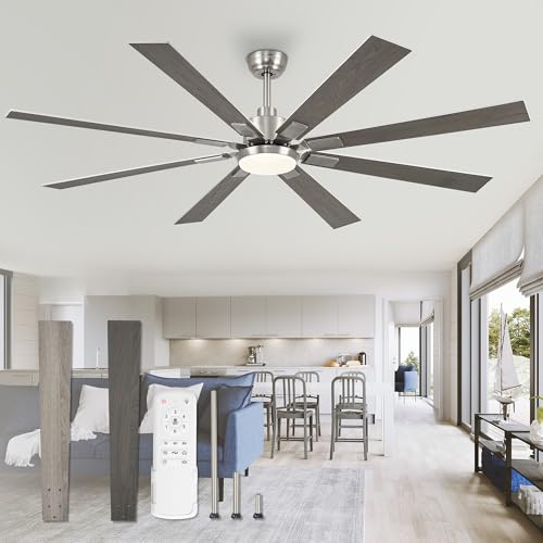 ZMISHIBO 72 inch Brushed Nickel Modern Ceiling Fans with Lights and Remote, Indoor/Outdoor Ceiling Fan for Living Room Patio, 6 Speed Reversible Quiet DC Motor, 3 CCT, Dual Finish Blades