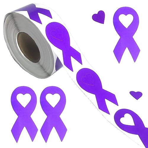 500 Pcs Purple Ribbon Awareness Stickers Domestic Violence Awareness Accessories Pancreatic Cancer Lupus Alzheimers Awareness Decorations Products