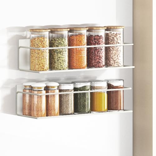 Roysili Magnetic Spice Rack for Refrigerator Magnetic Fridge Shelf for Kitchen Spice Organizer Magnetic Shelf for Fridge Space Saving White 2 Pack