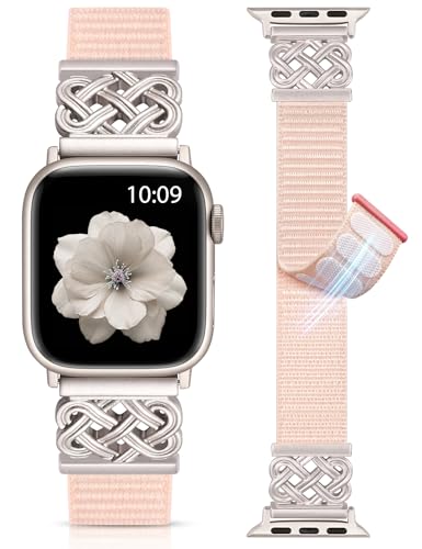 Minyee Nylon Loop Band Compatible with Apple Watch Bands 38/40/41/42mm Women Men, Celtic Knot Adjustable Breathable Braided Straps for iWatch Series 11 10 9 8 7 6 5 4 SE/Ultra 3 2 1, Pink/Starlight