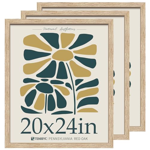 TENIBYC 20x24 Oak Poster Frame 3 Pack, Natural Solid Wood Picture Frame, Wall Gallery Frame