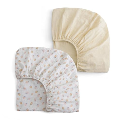 xuan dian Muslin Crib Sheets for Girl Boy, 100% Cotton Neutral Baby Crib Sheets Fitted for Standard Crib Mattress, Soft and Breathable - 28"x 52", 2 Pack (Strawberry, Cream)