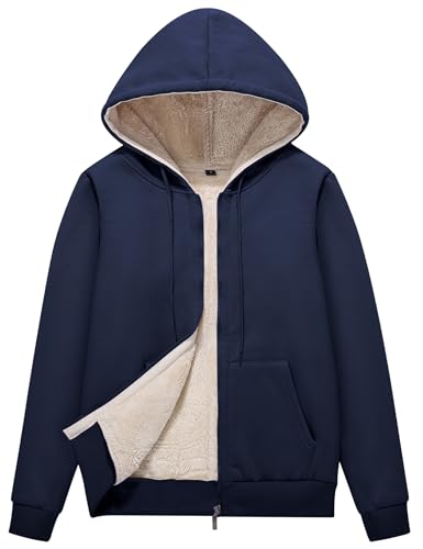 Flygo Women Winter Hoodies Zip Up Fleece Sherpa Lined Warm Sweatshirts Jacket(NavyBlue-L)