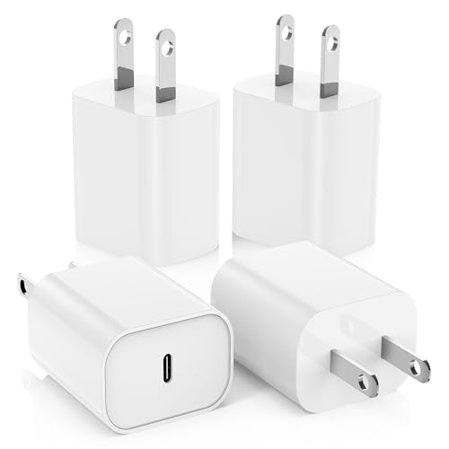 4Pack USB C Charger Block 20W, iPhone 16 15 Fast Charging Block for Apple 20W Type C Power Adapter Plug, for Apple iPhone Charger USB C for iPhone 16 15 Pro Max/14 13 12 Pro Max/iPad/Google,Samsung