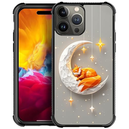 FKBRCL4U for iPhone 15 Pro Max Case,Graphic Design for Girl Boy Soft Silicone Hard Acrylic Shock Protection Designed for iPhone 15 Pro Max Geometric Fox Sleep On Moon Pattern