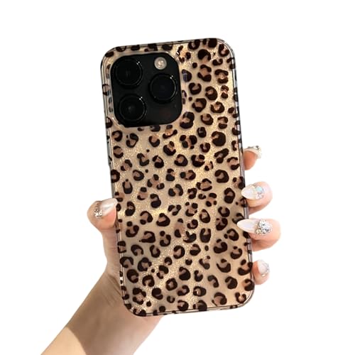 XQAGU for iPhone 13 Pro Max Case Cute Trendy Aesthetic Leopard Glossy Cool Girls Woman Retro Phone Case-Brown