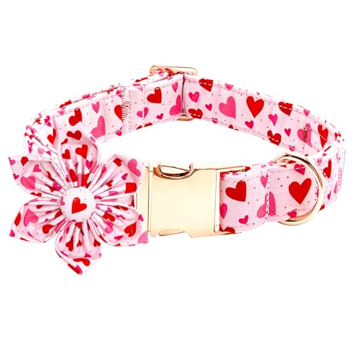 Bobo Rainbow Valentine's Dog Collar with Flower-Red Heart Dog Collar Cute Adjustable Pet Collar Soft Comfortable Dog Collar Cotton Holiday Puppy Collar Metal Buckle Collar Gift for Small Dogs