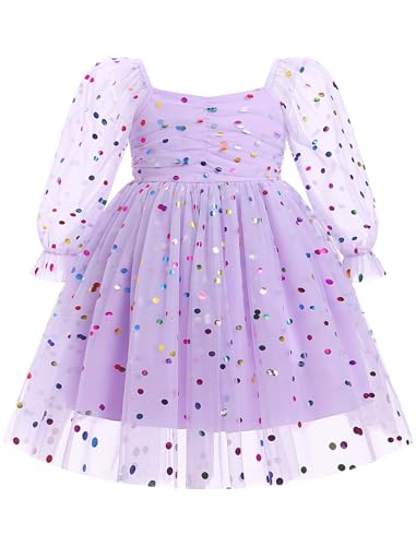 IMEKIS Fairy Dresses for Girls: Toddler Easter Smocked Dress Tulle Long Sleeve 1st Birthday Outfit Smash Cake Photoshoot Baby Kids Formal Tea Party Graduation Purple Confetti 12-18 Months