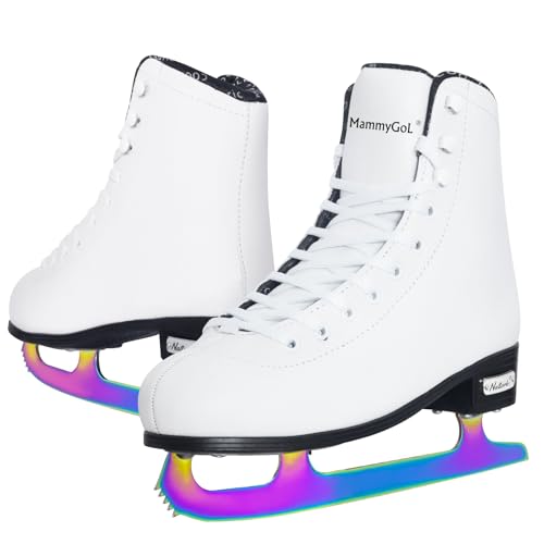 MammyGol Classic Ice Figure Skates for Womens/Misses/Girls Ice Skates with Vacuum Plating Steel Blade Light Support Ice Figure Skates in White Color Size 7