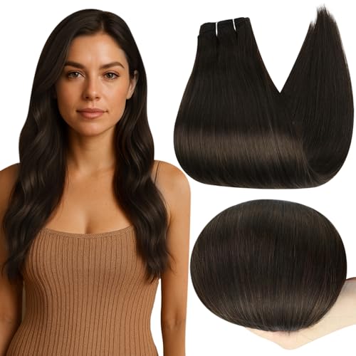 Full Shine Weft Hair Extensions Sew In Hair Extensions Real Human Hair Invisible Silky Straight Hair Color Dark Brown for Women Hair Pieces Real Natrual Human Hair Extensions 105 Grams 24 Inch