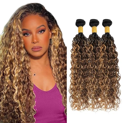 28 30 32 inch P427 Human Hair Bundles Highlight Water Wave Bundles Ombre Brown Human Hair Bundle 3 Tone Black and Brown Color