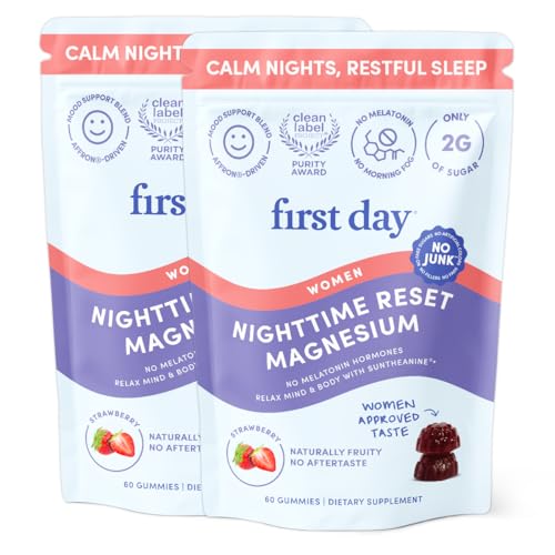 First Day Women’s Nighttime Reset Calming Magnesium Gummies – Sleep Aid Supports Peaceful Rest, Balanced Mood & Energy – Supplement with Magnesium Citrate, L-Theanine & No Melatonin – 60-Day Supply
