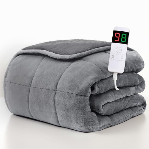 Homemate Heated Weighted Blanket for Adults - 50"x60" 12lbs Electric Throw Fast Heating Heavy Blanket 1/2/4/6/8 Hour Auto Off 10 Heat Levels Over-Heat Protection Comfortable Flannel Sherpa