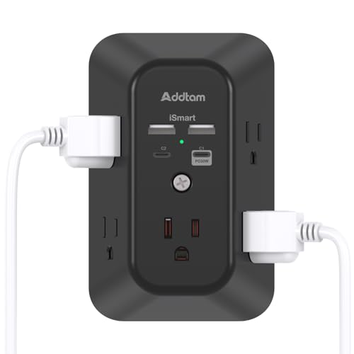 Outlet Extender Surge Protector - Addtam 5-Outlet Splitter with 4 USB Wall Charger(PD 30W), Multi Plug Wall Outlet Power Strip for Home, Black