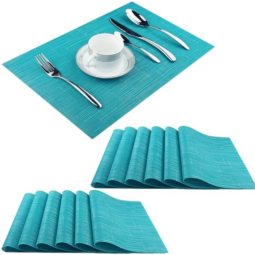 PIGCHCY Placemats Set of 12 Washable Durable Place Mats Vinyl Heat Resistant Non-Slip Table Mats Indoor Outdoor (Turquoise)